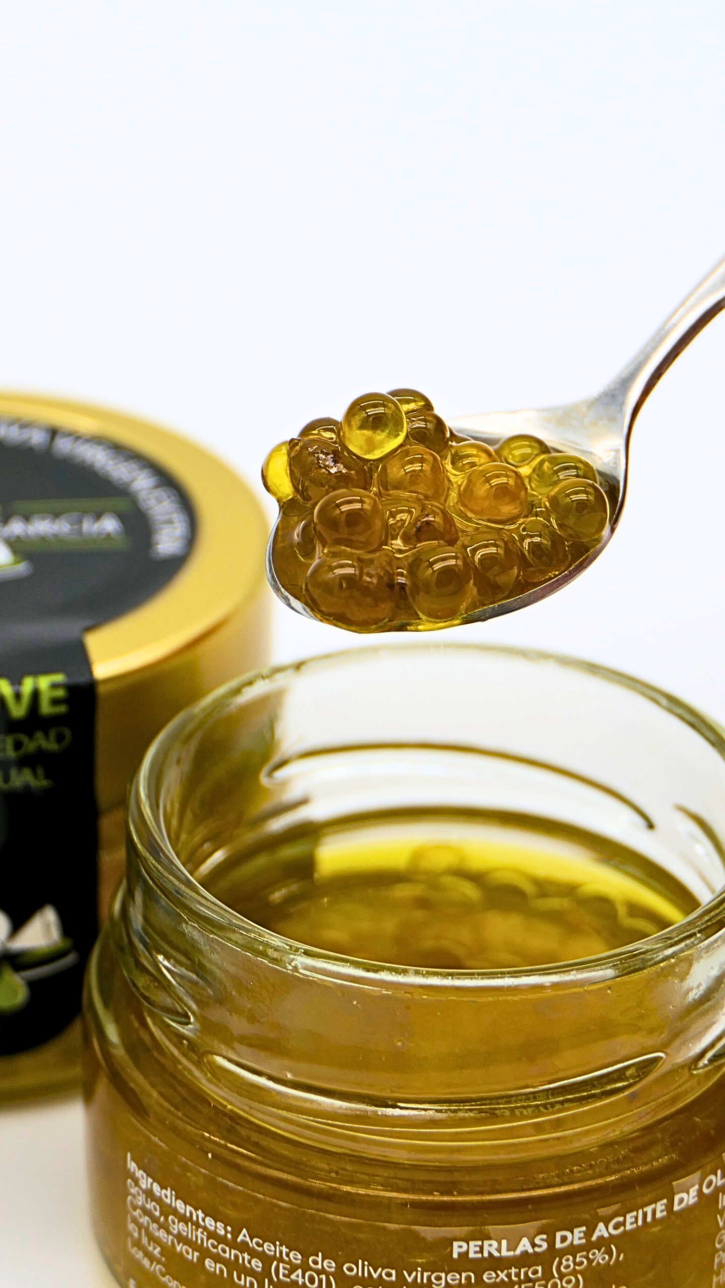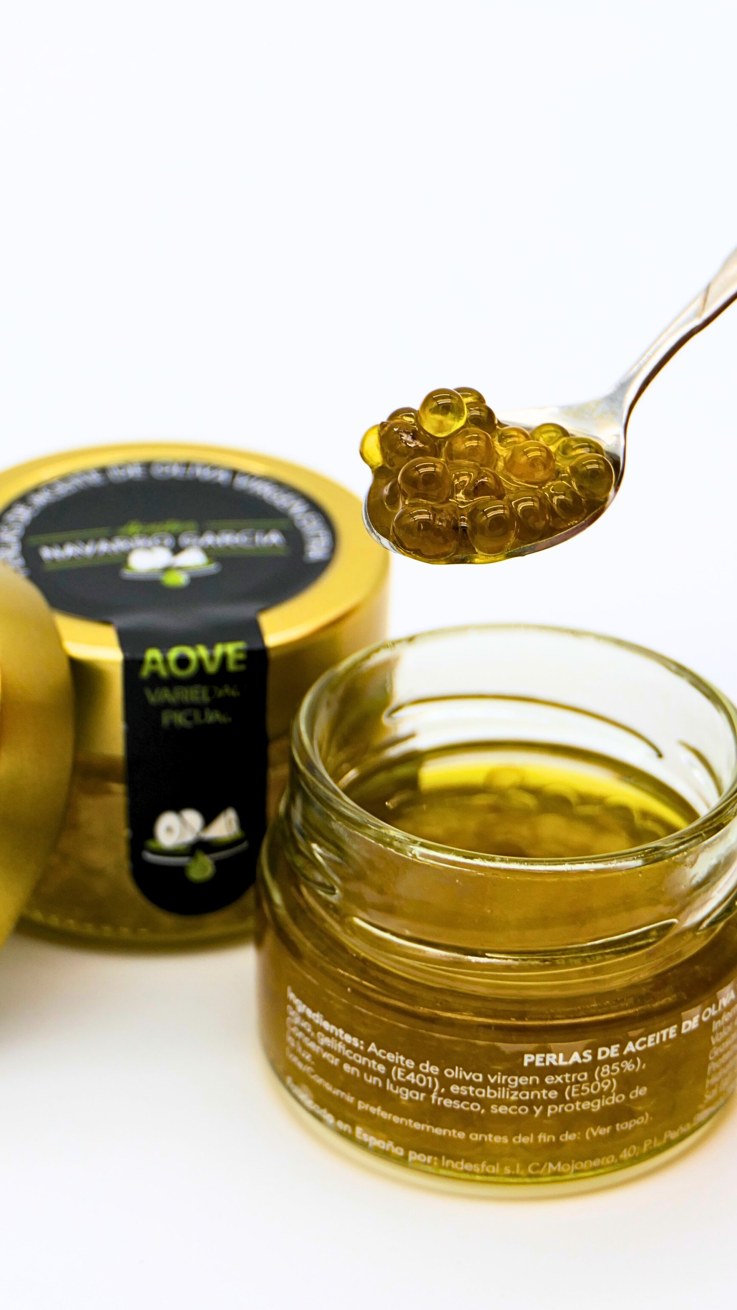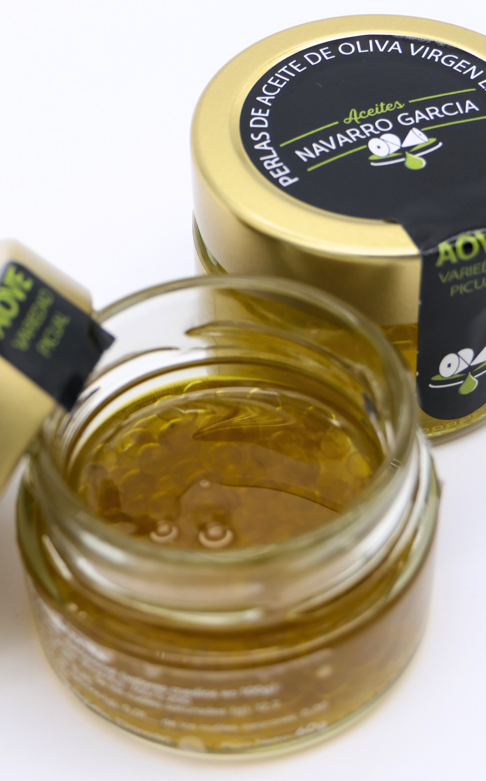 Le caviar d’huile d’olive Navarro est obtenu par sphérification à froid d’une huile d’olive vierge extra de grande qualité, afin de préserver toute l’intensité aromatique et la pureté du fruit.